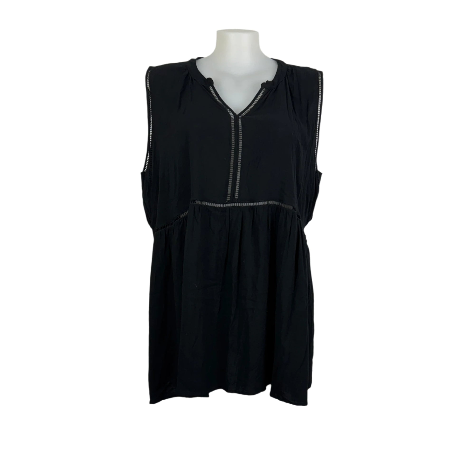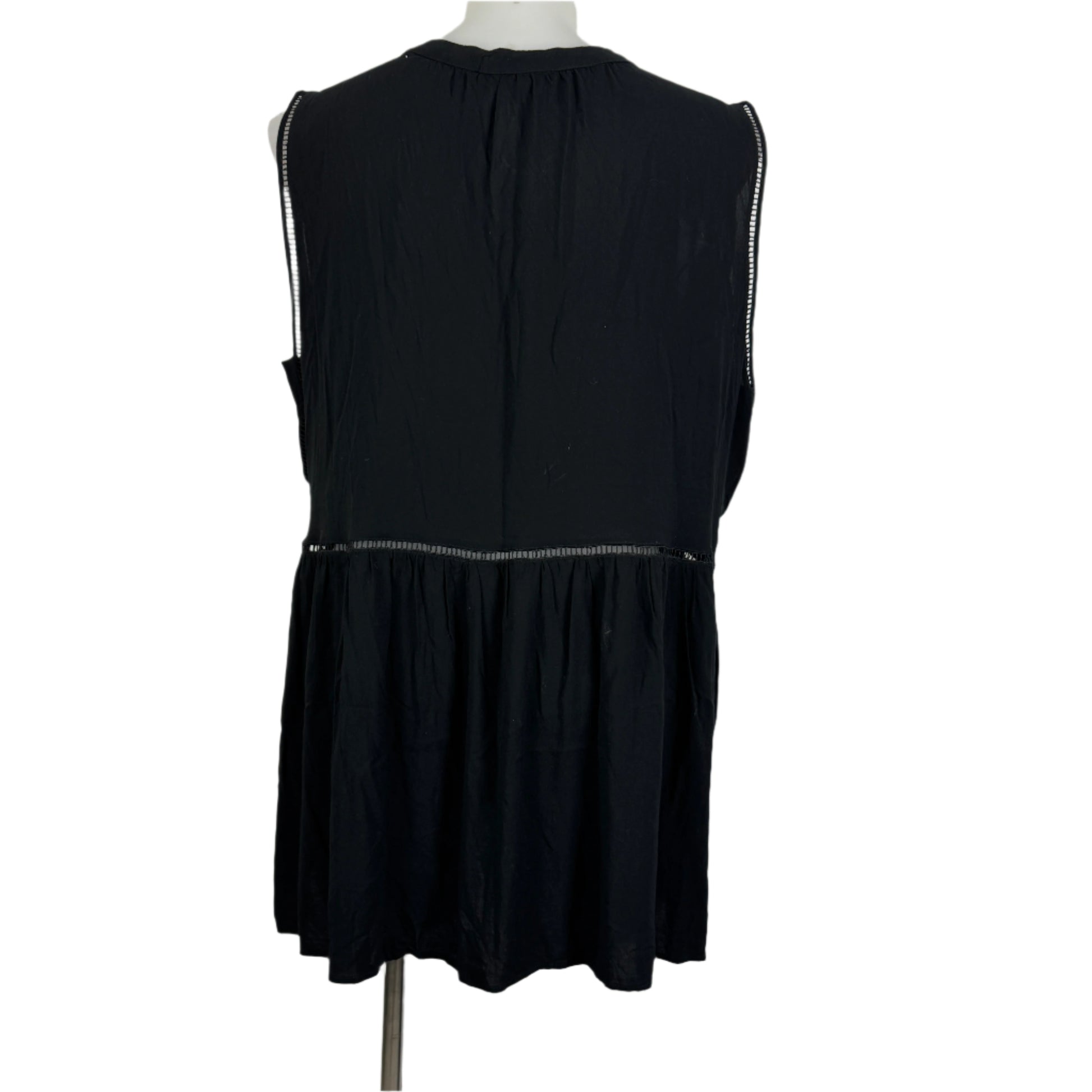 This chic sleeveless top from Autograph combines elegance with comfort. Crafted from soft viscose, it features intricate cut-out detailing along the neckline and waist for a stylish touch. Perfect for layering or wearing on its own, this versatile black top is ideal for casual outings or dressed-up occasions.