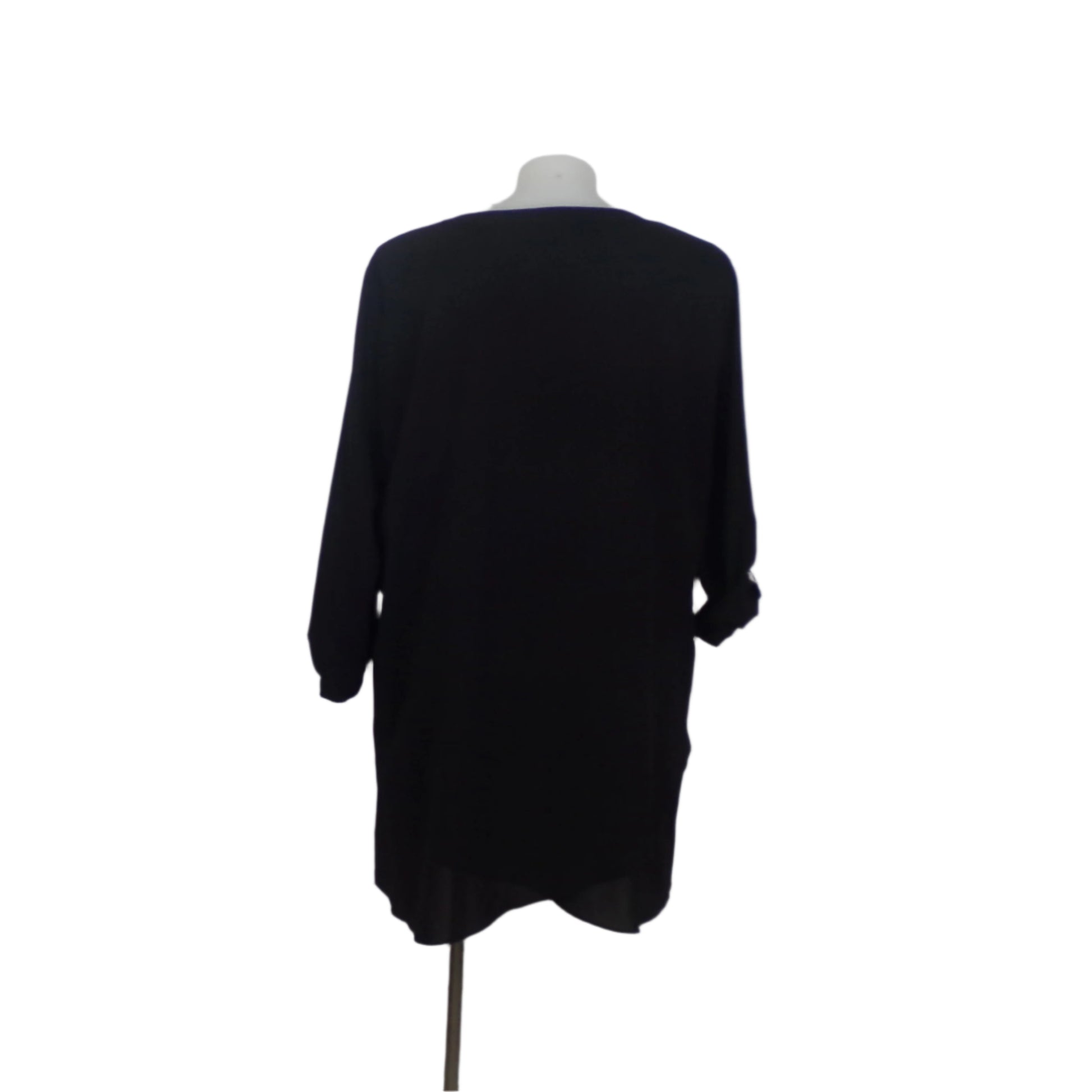 Sleek and versatile, this preloved black tunic from Autograph is a perfect addition to your wardrobe. Designed in a flattering size 24, this tunic features a stylish zip-front detail that adds a modern edge to its elegant simplicity. The button-up sleeves offer adjustable styling, while the lightweight polyester fabric and lining ensure comfort and a polished fit. The high-low hemline adds a flowy, flattering silhouette that’s ideal for any occasion.