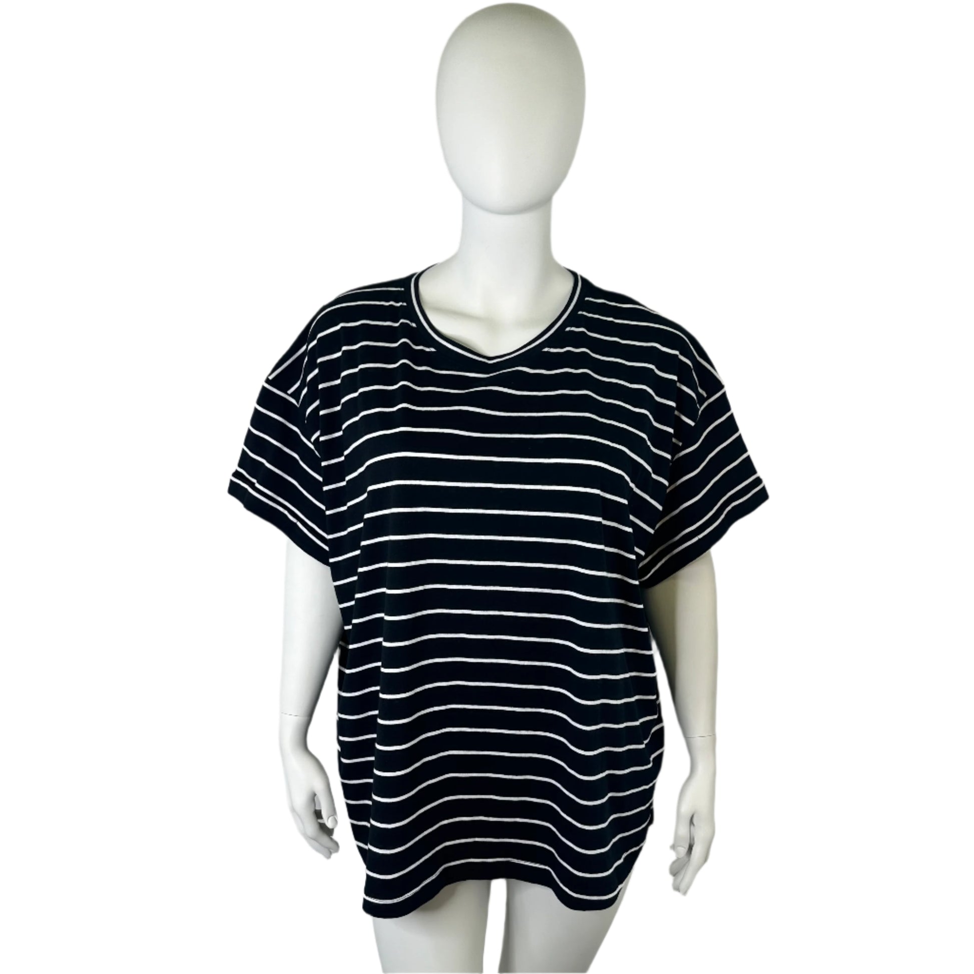Elevate your casual wardrobe with this comfortable and stylish striped tee from Avella. Designed with plus-size fashion in mind, this tee combines classic style with practicality.