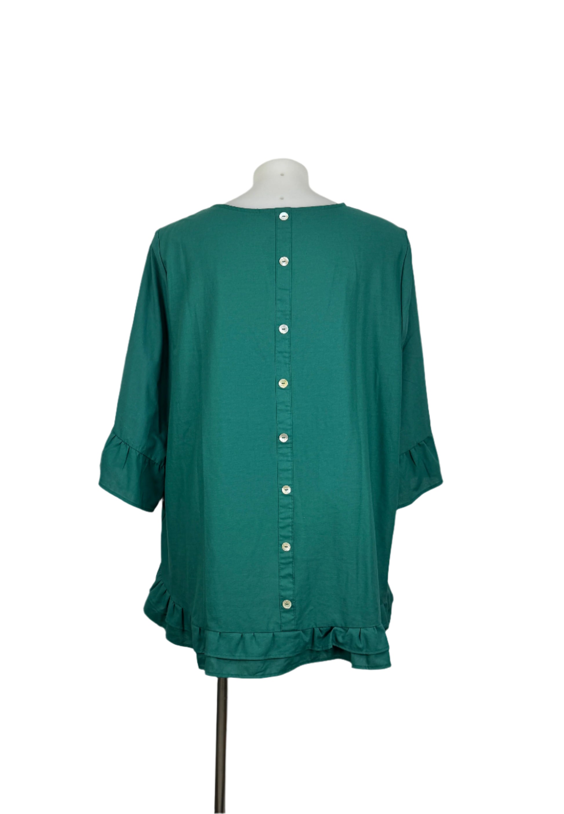 Elevate your casual wardrobe with this charming Beme green linen blend top. Designed with ruffle accents on the sleeves and hem, this top brings a touch of femininity to a comfortable, relaxed fit. The keyhole detail at the neckline adds an elegant touch, making it versatile enough for both casual outings and dressier occasions. Crafted from a breathable linen and viscose blend, it’s lightweight and perfect for warmer weather.