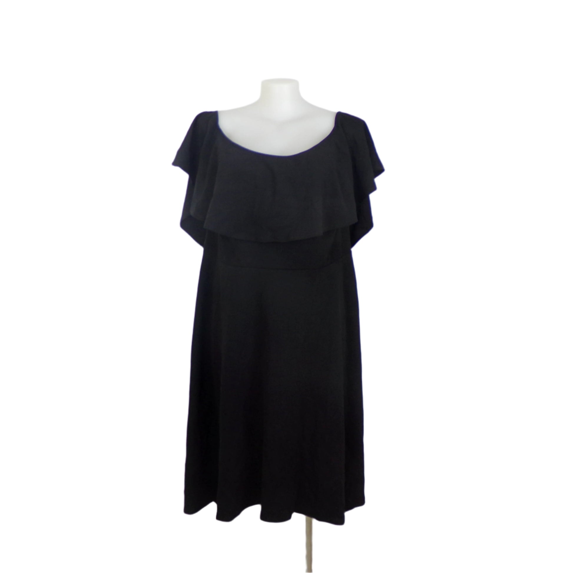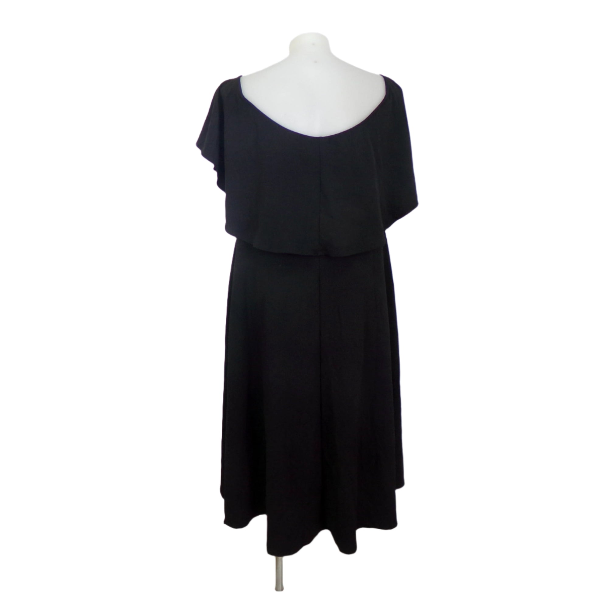 Effortlessly elegant, this preloved black dress from Boohoo is designed to flatter and impress. In a size 24, it features a versatile on/off shoulder design, allowing you to style it for any occasion. The flowing chest overlay adds a touch of romance, while the hi-lo hem creates a modern, flattering silhouette. Made with a comfortable stretch fabric, this dress is perfect for events, evenings out, or elevating your everyday look.