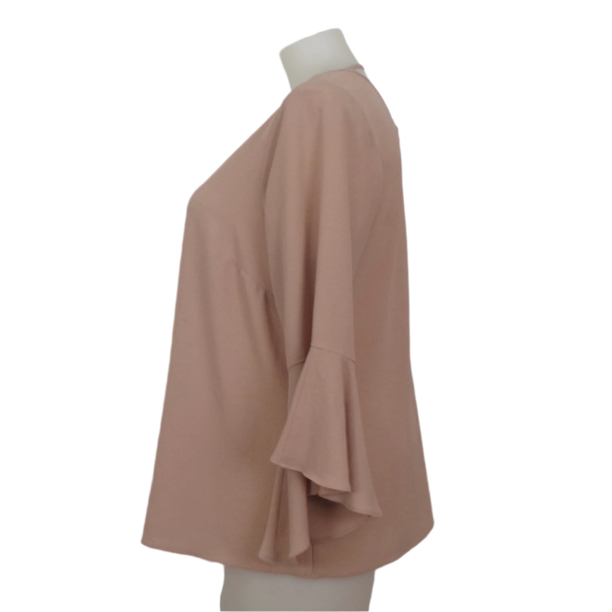 Add a touch of elegance to your wardrobe with this preloved City Chic Bell Sleeve Blouse in size 16. Crafted from a comfortable poly-elastane blend, this blouse offers just the right amount of stretch for a flattering and flexible fit. The soft salmon color adds a subtle sophistication, while the bell sleeves and V-neckline elevate the look with a modern, feminine charm.