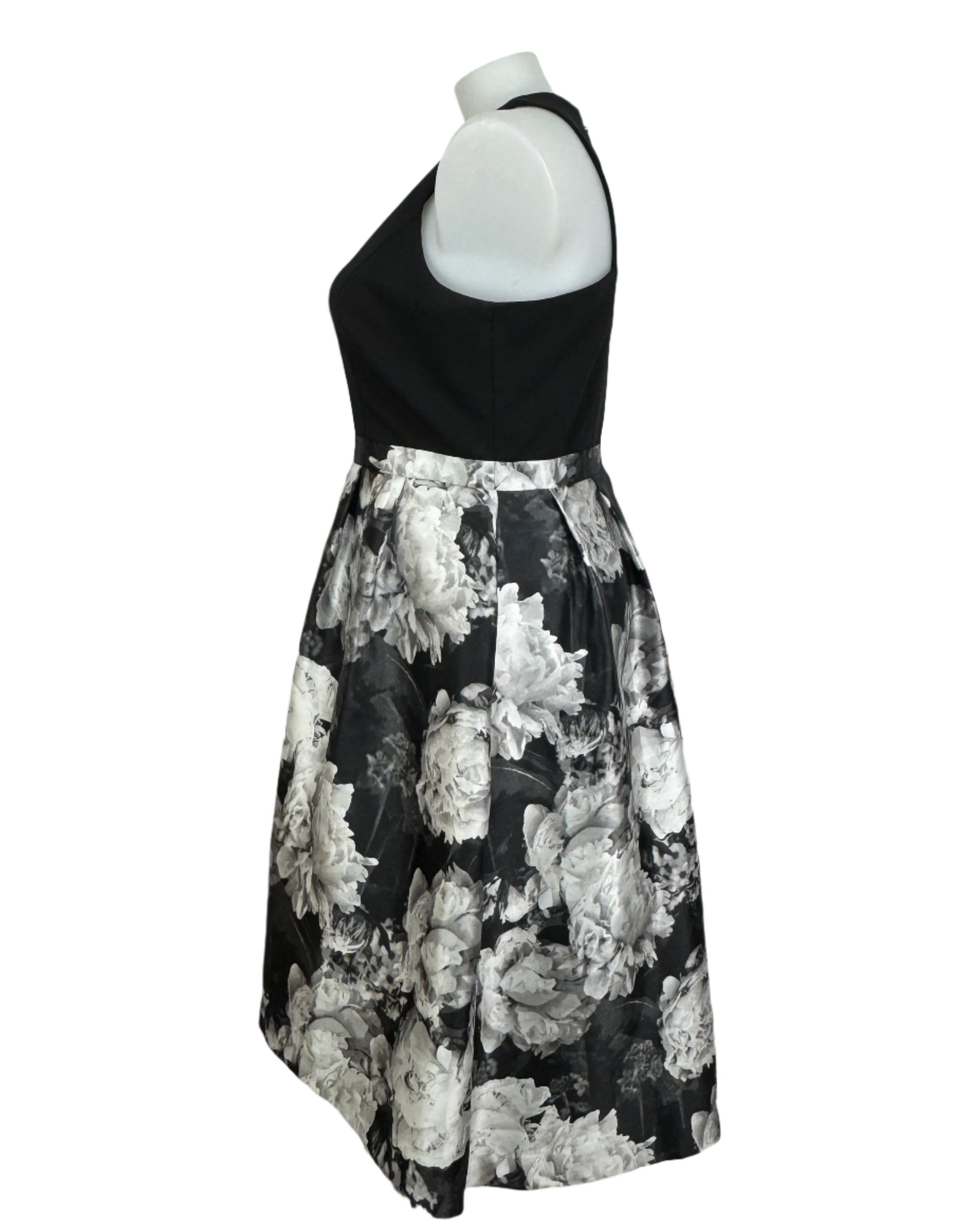 Elevate your evening look with this stunning City Chic formal dress. Featuring a sleek black bodice and a striking monochrome floral print skirt, this dress combines modern sophistication with timeless elegance. The voluminous skirt includes convenient side pockets for a practical yet stylish touch, while the fully lined design ensures a flawless silhouette. Crafted from polyester with added elastane, the dress offers a comfortable fit with a luxe feel.