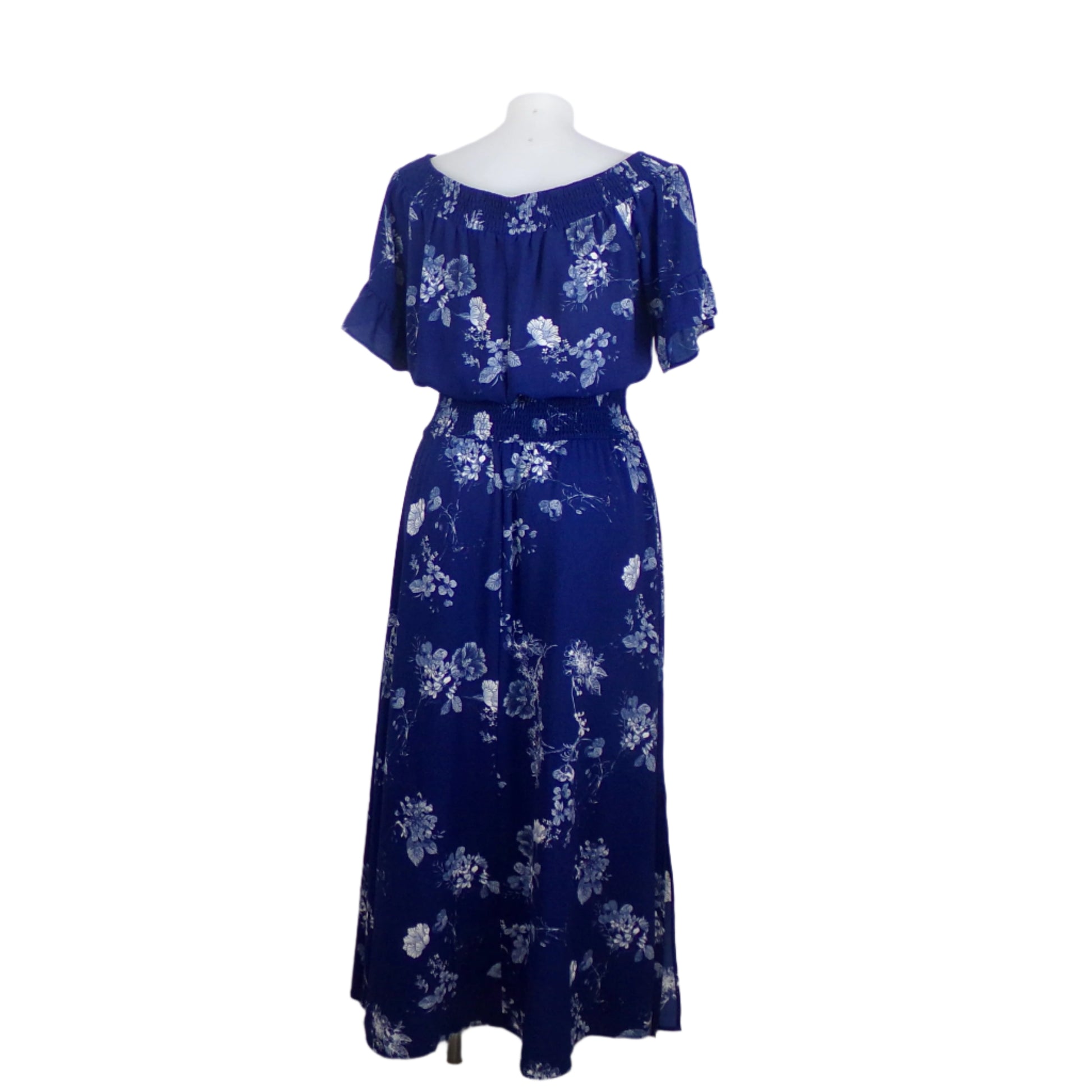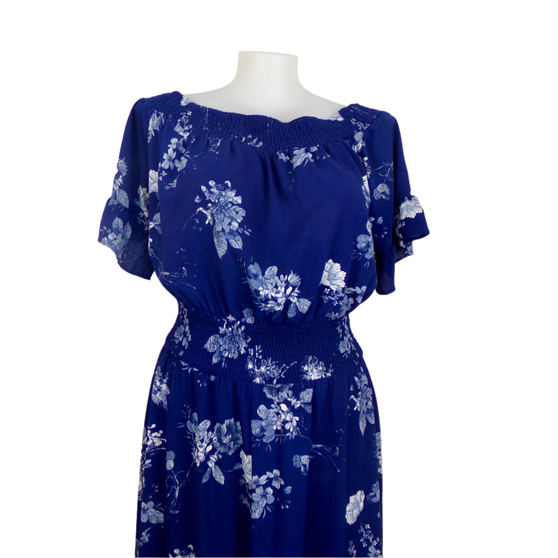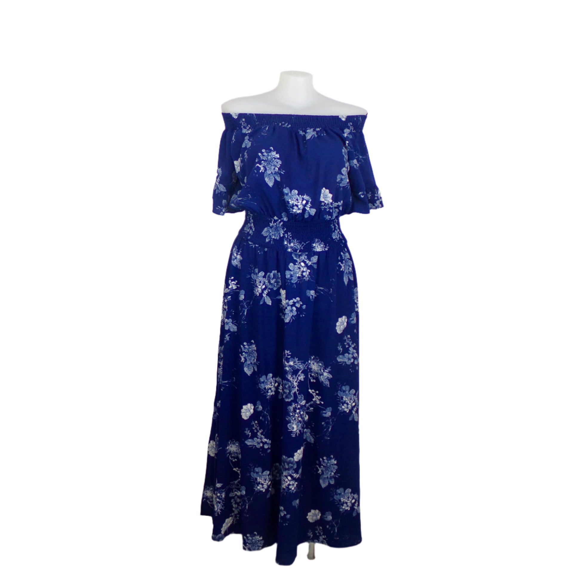 Fit: Comfortable shirred waist enhances curves, while the off-shoulder neckline adds a touch of elegance.