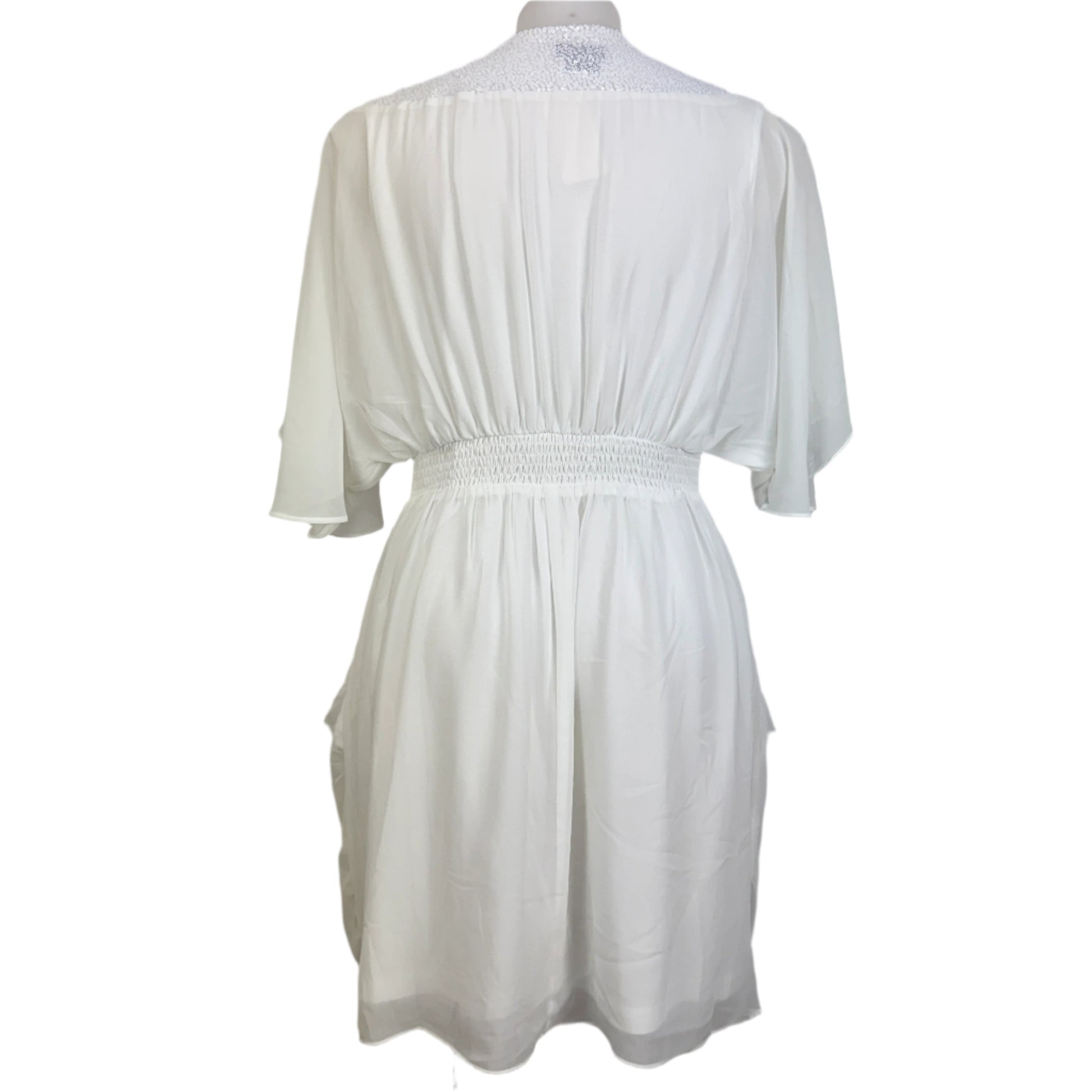 This elegant ivory dress by City Chic is a timeless addition to your wardrobe. Featuring a flattering cross-over bodice, draped silhouette, and shimmering embellished shoulder detail, this dress exudes sophistication. The stretch waist ensures a comfortable fit, while the fully lined design adds an extra layer of refinement. Crafted from a polyester and elastane blend, this piece offers both style and ease of movement.