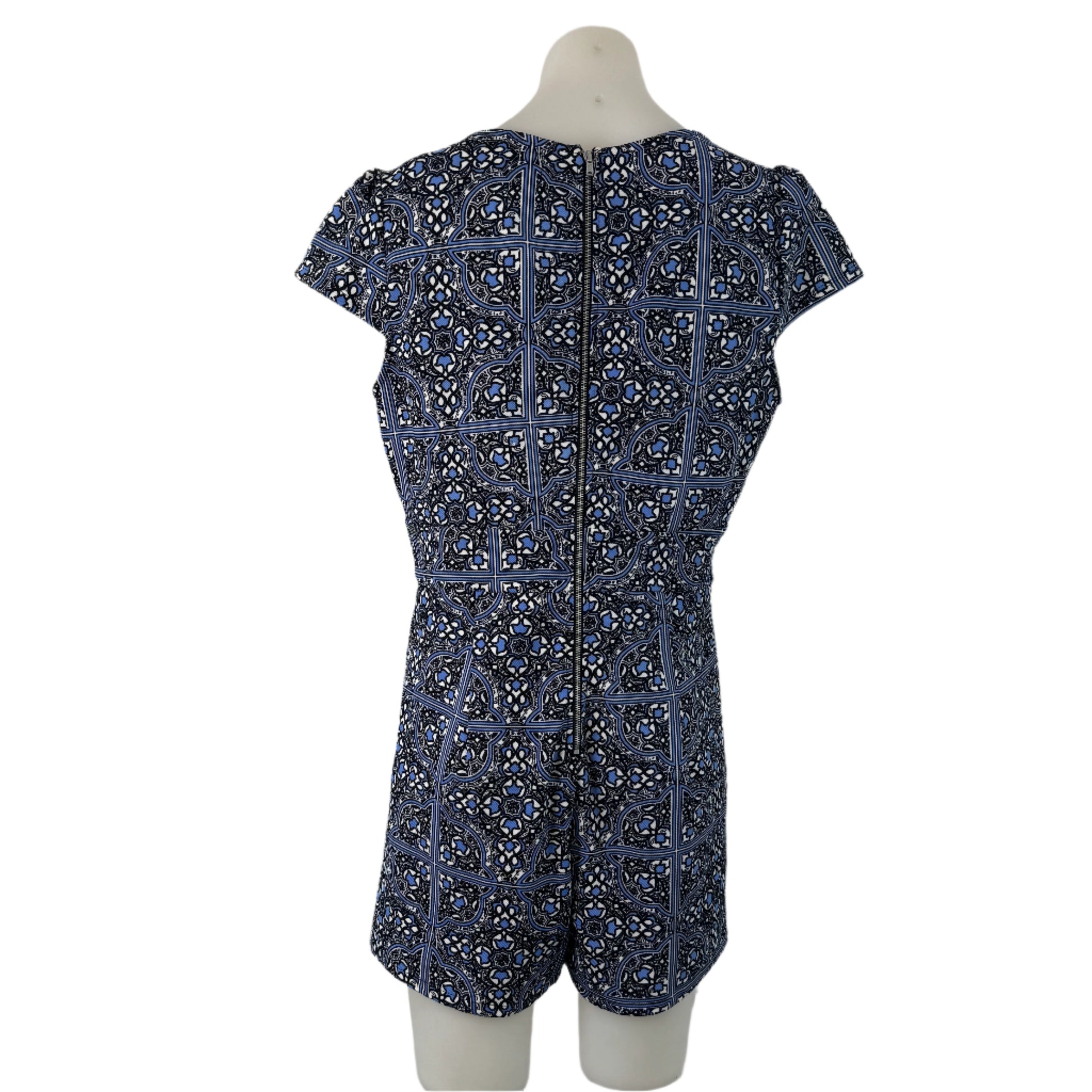 Step into style and comfort with this elegant Fleur De Lis print stretch romper by Dotti. Designed with a flattering silhouette, it features a chic stretch poly/elastane fabric that moves with you for all-day ease. The zip-back closure ensures a tailored fit, while the intricate Fleur De Lis pattern adds a touch of sophistication to your wardrobe.