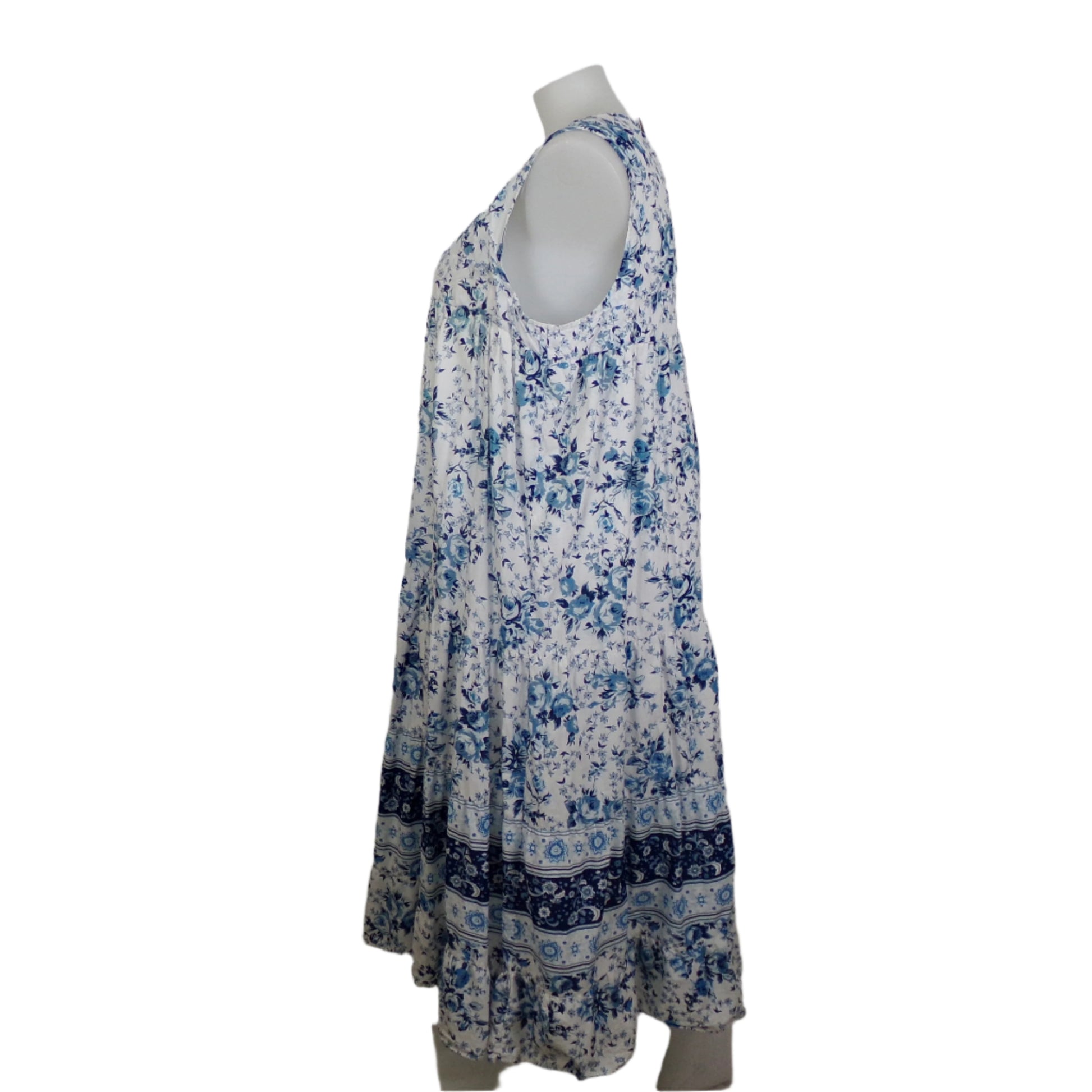 Embrace effortless summer style with this preloved Isobelle Floral Sleeveless Dress in size 20. Made from 100% breathable cotton, this dress is designed for ultimate comfort during warm-weather days. Fully lined in soft cotton, it ensures a lightweight yet modest wear.