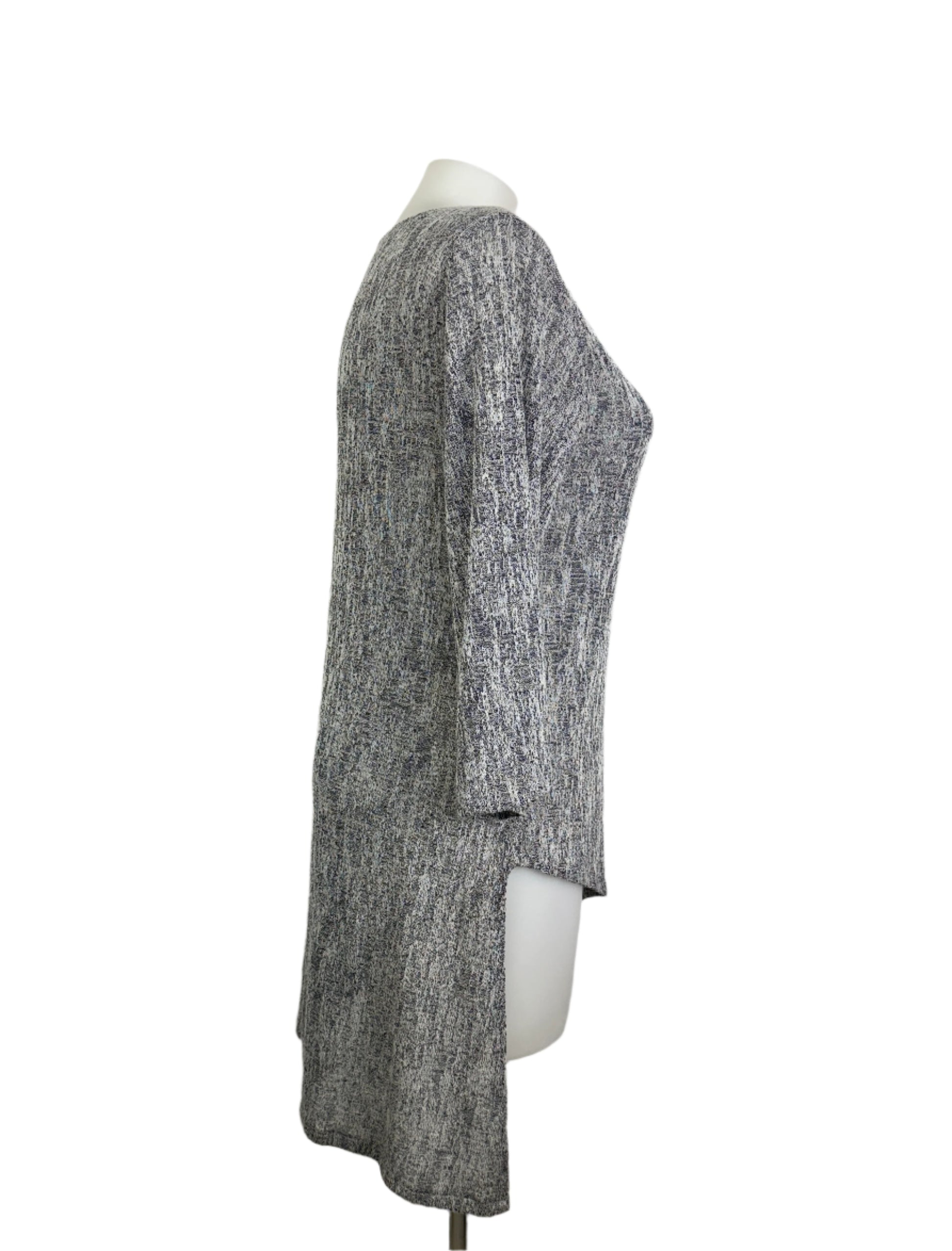 Elevate your casual wardrobe with this versatile long-sleeve knit top. Designed with a soft, natural stretch fabric blend of polyester and viscose, this piece ensures comfort and style. The unique diagonal hemline adds an asymmetrical flair, making it a chic addition to your everyday looks. Perfect for pairing with leggings or jeans for a relaxed yet stylish outfit.