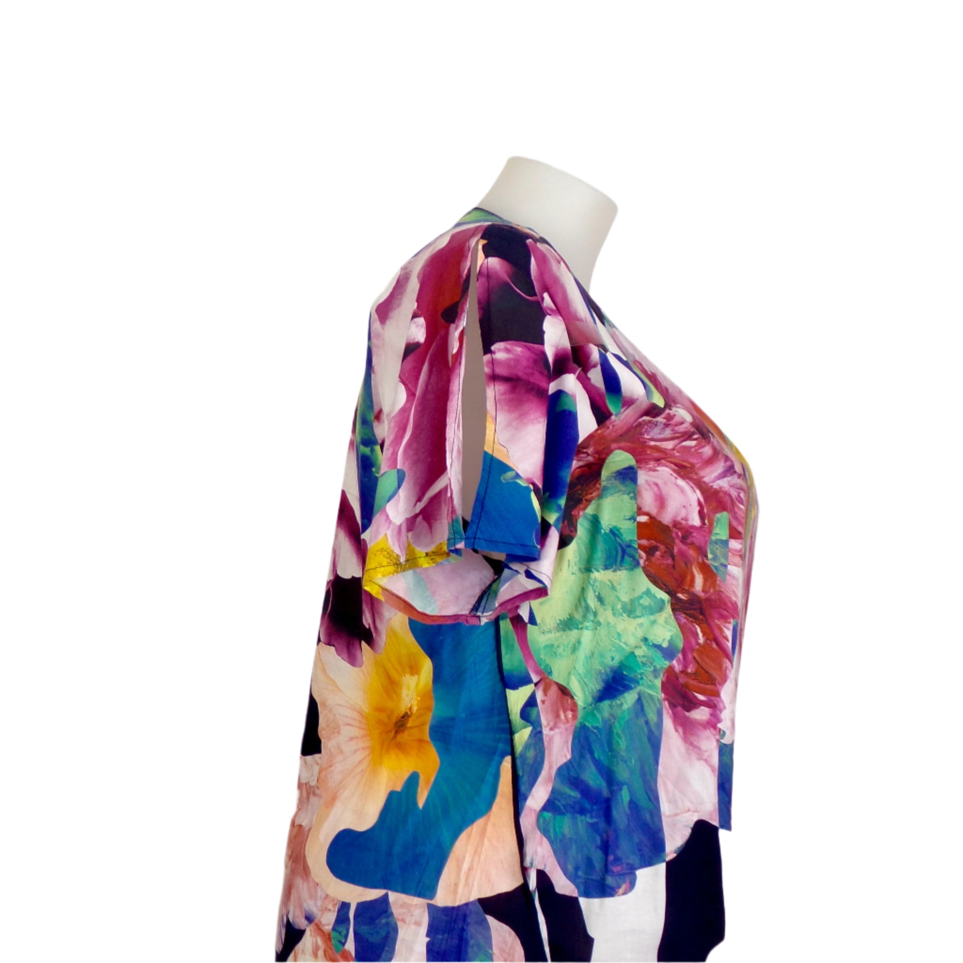 Elevate your wardrobe with this vibrant Marco Polo floral top, designed for both comfort and style. Featuring a striking bold floral print, this short-sleeve piece is crafted from a breathable cotton-viscose blend, perfect for all-day wear. The V-neckline adds a flattering touch, while the split sleeve detail provides a unique and airy finish. A must-have for ladies seeking bold, effortless elegance in their attire.