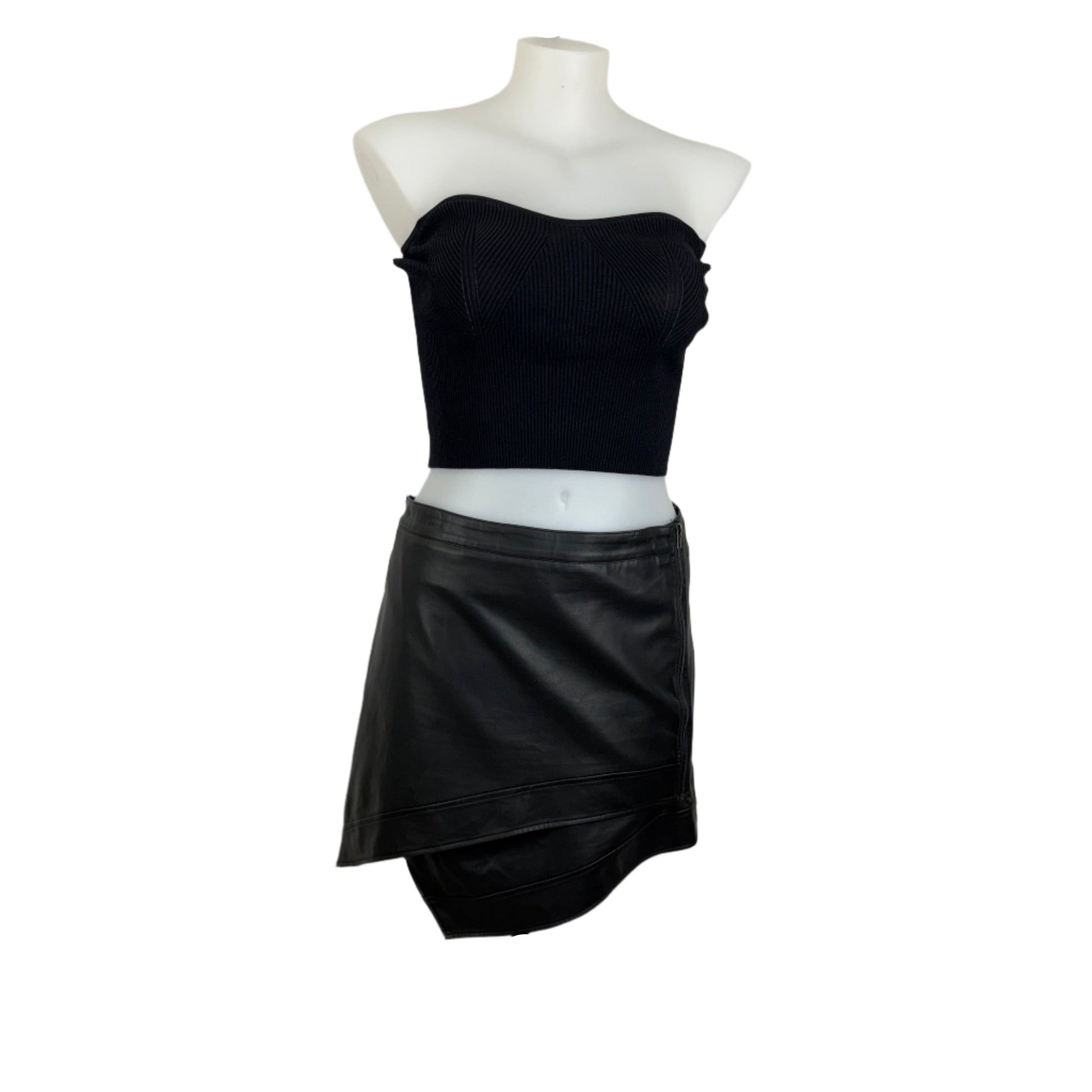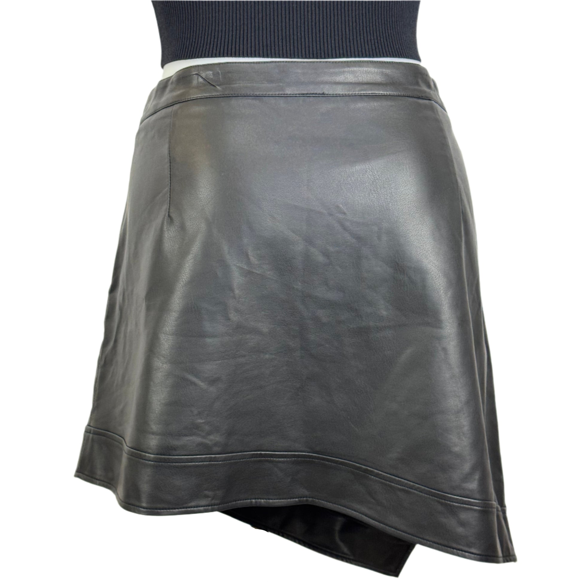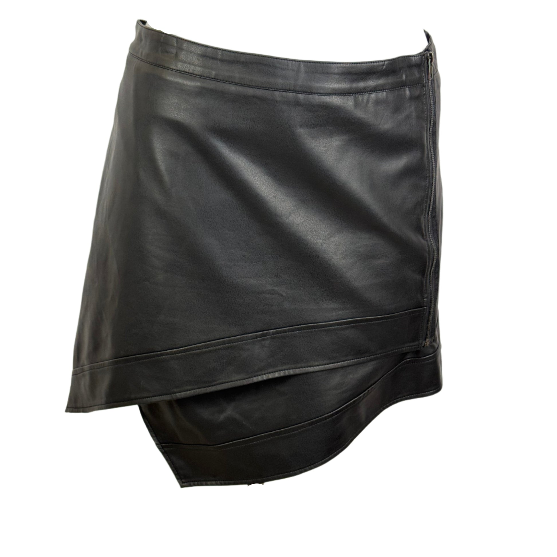 This chic and edgy faux leather mini skirt from Pink Dusk is a must-have for any wardrobe. Designed with a flattering asymmetrical hemline and crafted from buttery soft faux leather, it offers both style and comfort. Fully lined for a smooth fit, this skirt also features a zip detail for an added touch of sophistication.