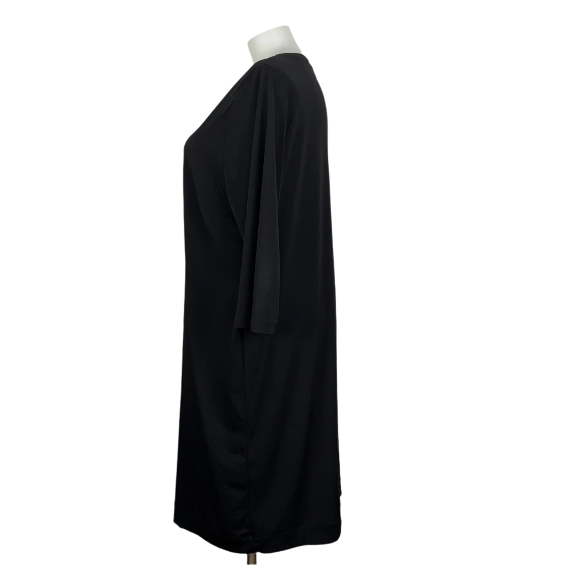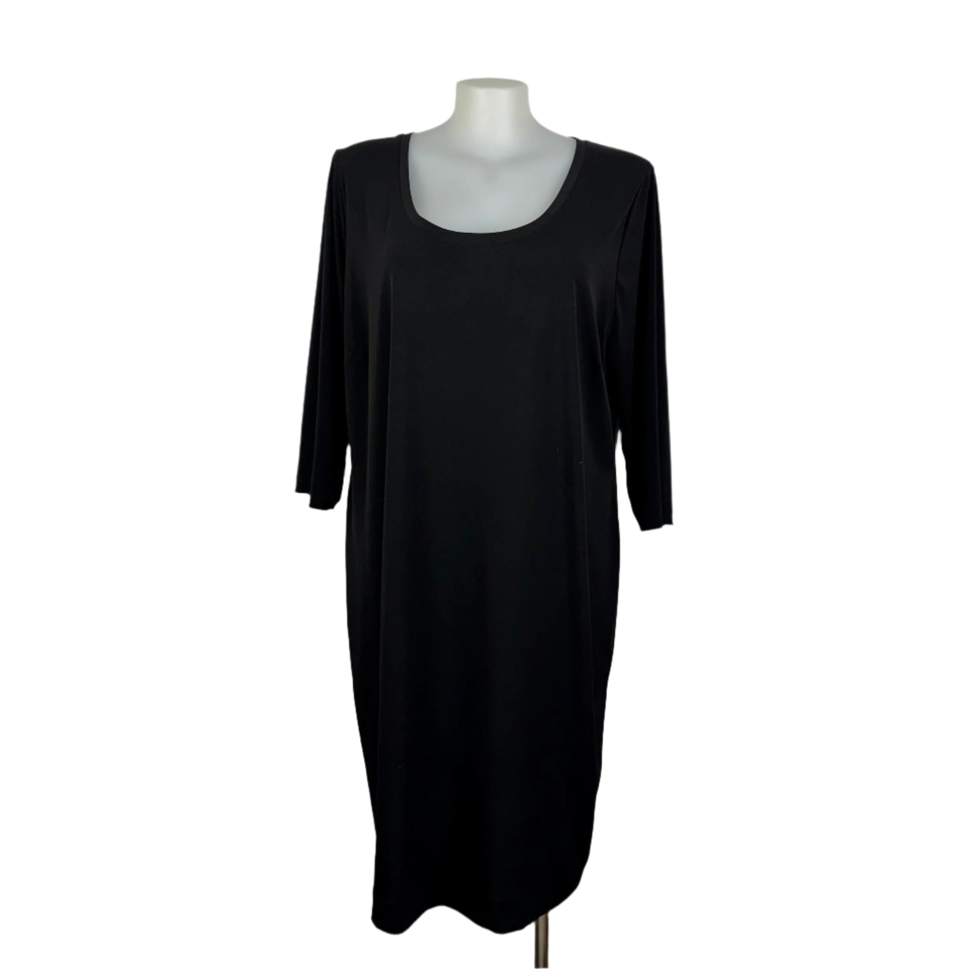 This classic black layering dress by Taking Shape is a versatile wardrobe staple. Designed with a flattering scoop neckline and 3/4 sleeves, it is perfect for wearing on its own or layering with your favourite jackets, cardigans, or accessories. The stretchy poly-elastane fabric offers all-day comfort and a sleek silhouette, making it ideal for both casual and dressier occasions.