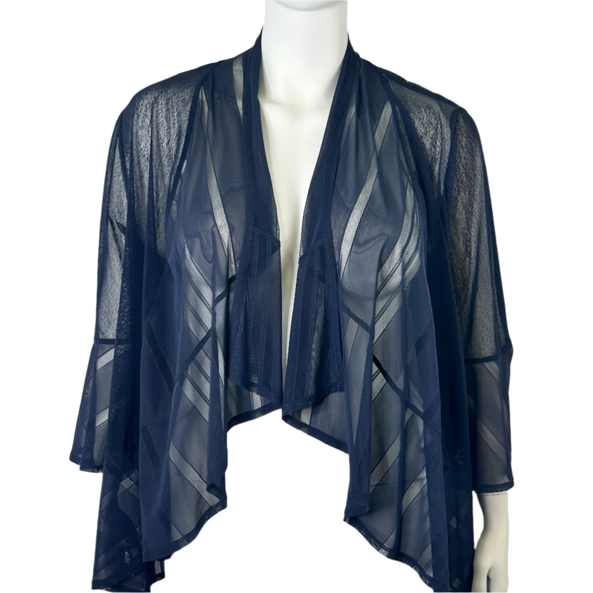 Elevate your outfit with this stunning sheer bolero from Taking Shape, designed to flatter and flow effortlessly. Crafted in a beautiful ink navy tone, this lightweight piece features intricate panel detailing and a waterfall hemline that drapes gracefully for a chic, feminine touch. Perfect for layering over dresses, tops, or tanks, it's versatile enough for both casual and formal occasions.
