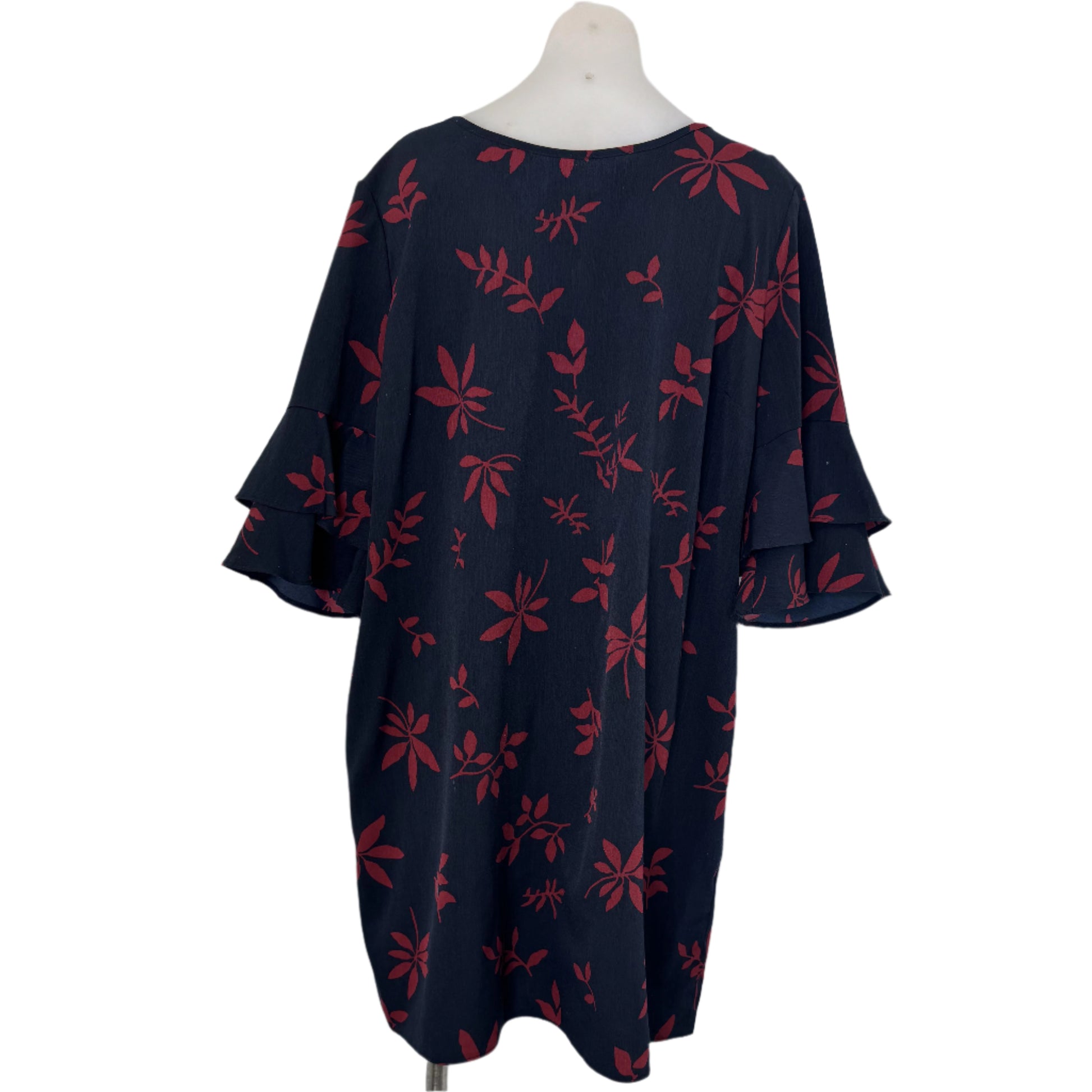 Elevate your wardrobe with this chic Tokito shift dress, perfect for any occasion! Featuring a bold navy and red floral pattern, this dress combines timeless elegance with a modern edge. The cross-detail neckline adds a touch of sophistication, while the layered sleeves bring a unique flair. Designed for comfort and style, it also includes functional pockets—an absolute must-have!