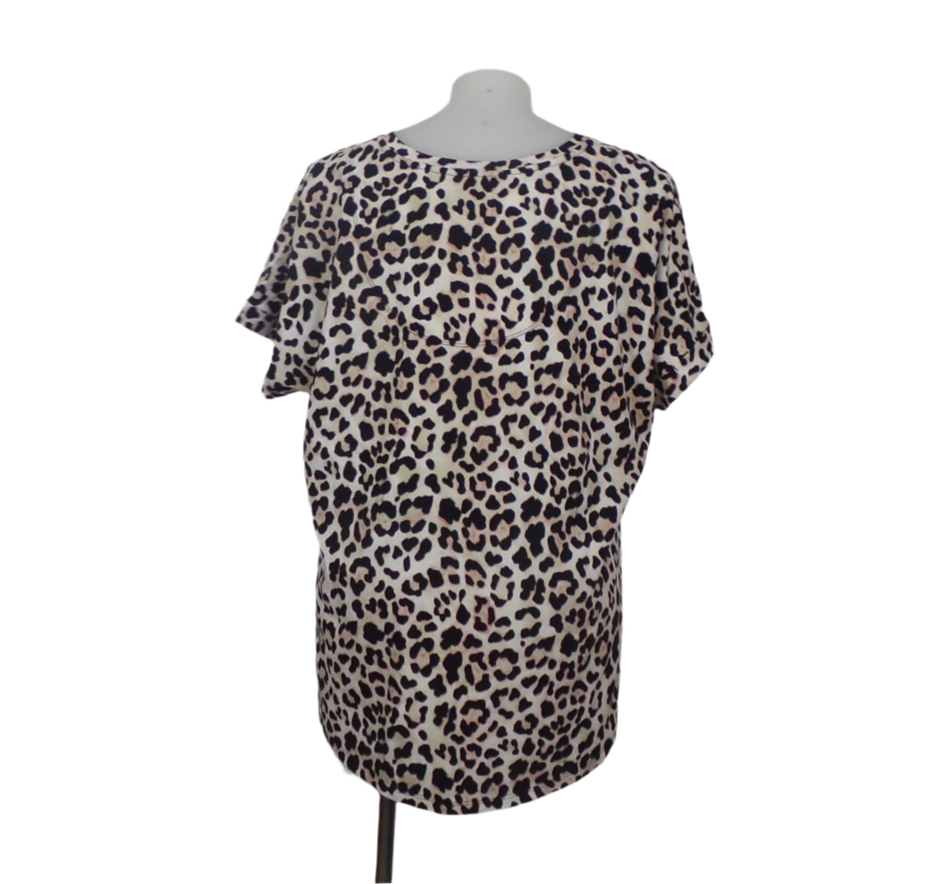 Bring a touch of boldness to your wardrobe with this preloved Virtuelle Animal Print V-Neck Tee in size 20. Crafted from a soft and breathable organic cotton and elastane blend, this tee offers both comfort and a flattering fit. The classic V-neckline and cuffed short sleeves provide a casual yet stylish design, while the vibrant animal print adds a trendy and confident edge.